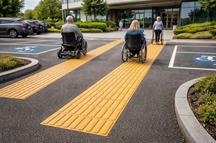 Dans les centres commerciaux, les bandes guident les clients des entrées aux ascenseurs, facilitant des expériences d’achat plus autonomes. Le monde des trottoirs urbains ne fait pas exception; ces bandes relient efficacement les passages piétons aux arrêts de transport, améliorant ainsi les déplacements quotidiens.
